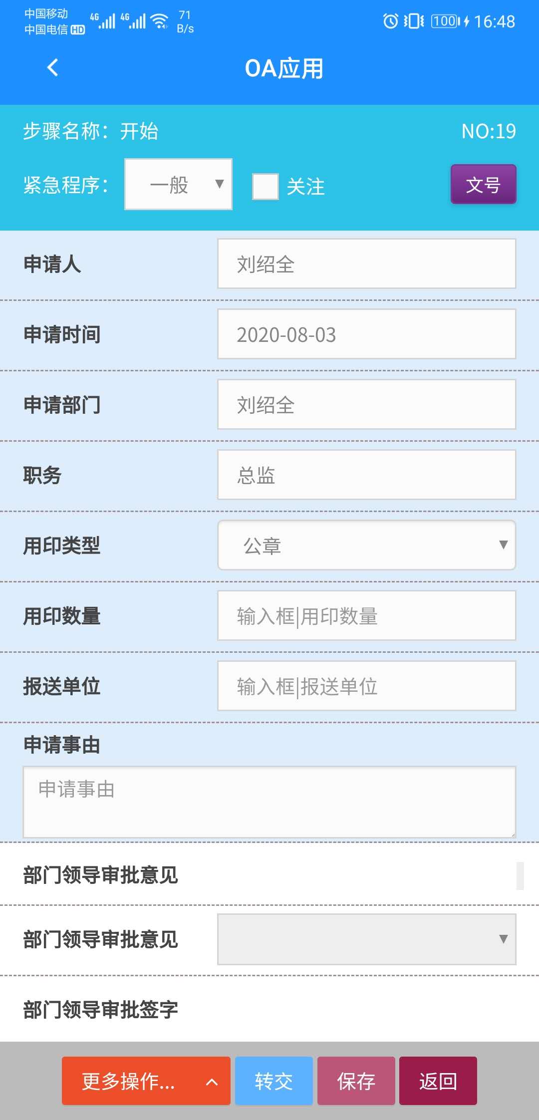本项目JDK8x64+SpringBoot+MyBatis+Redis+Druid+Beetl+Shrio的框架组合,自研工作流引擎,支持可视化表单设计与流程设计。支技分布式部署。功能完善能够满足中大型企业办公需要。